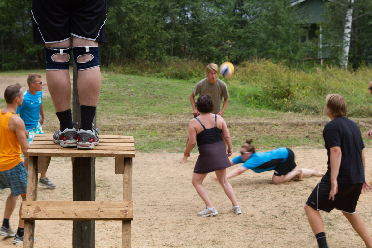 Muutama poikkeus: - 4-6 hengen joukkueet, kiertovaihto sallittu (4 pelaajaa, väh. 1 nainen kentällä, 5-6 pelaajaa, väh. 2 naista kentällä). - pelit pelataan purukentällä 9x18m, HoTan beach-palloilla - pelataan alkuun kahdessa 5 joukkueen lohkossa, jonka jälkeen puolivälierät, välierät ja sijoitusottelut. Joukkueille tulee kaikille vähintään 5 ottelua. - ottelut pelataan kaksieräisinä 15 pisteeseen joka on katto (ei kahden pisteen eroa). Sijoitusotteluissa mahdollinen kolmas erä 5 pisteeseen (ei kahden pisteen eroa). Sijoituksen alkulohkossa ratkaisee ensisijaisesti voitetut erät, sitten piste-ero, seuraavaksi tehdyt pisteet, sitten keskinäinen ottelu ja viimeiseksi arpa. Loppuottelu aikataulun mukaan kello 17.15. Oletko ilman joukkuetta? Ilmoittaudun pelaajapankkiin: kalle.pohjolainen@oph.fi TERVETULOA pelaamaan ja nauttimaan tunnelmasta!